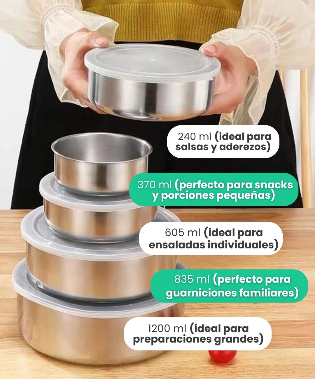 🎯 Cinco tamaños estratégicos - Salsa, snack, ensalada, guarnición o banquete completo