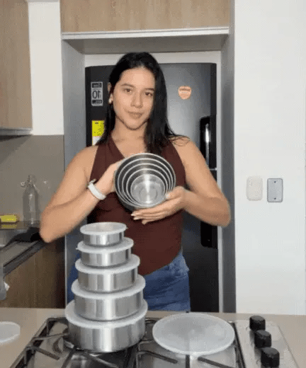 "Llevo dos años usandolos diario siguen brillantes como nuevos ningun olor ni mancha el acero es superior"