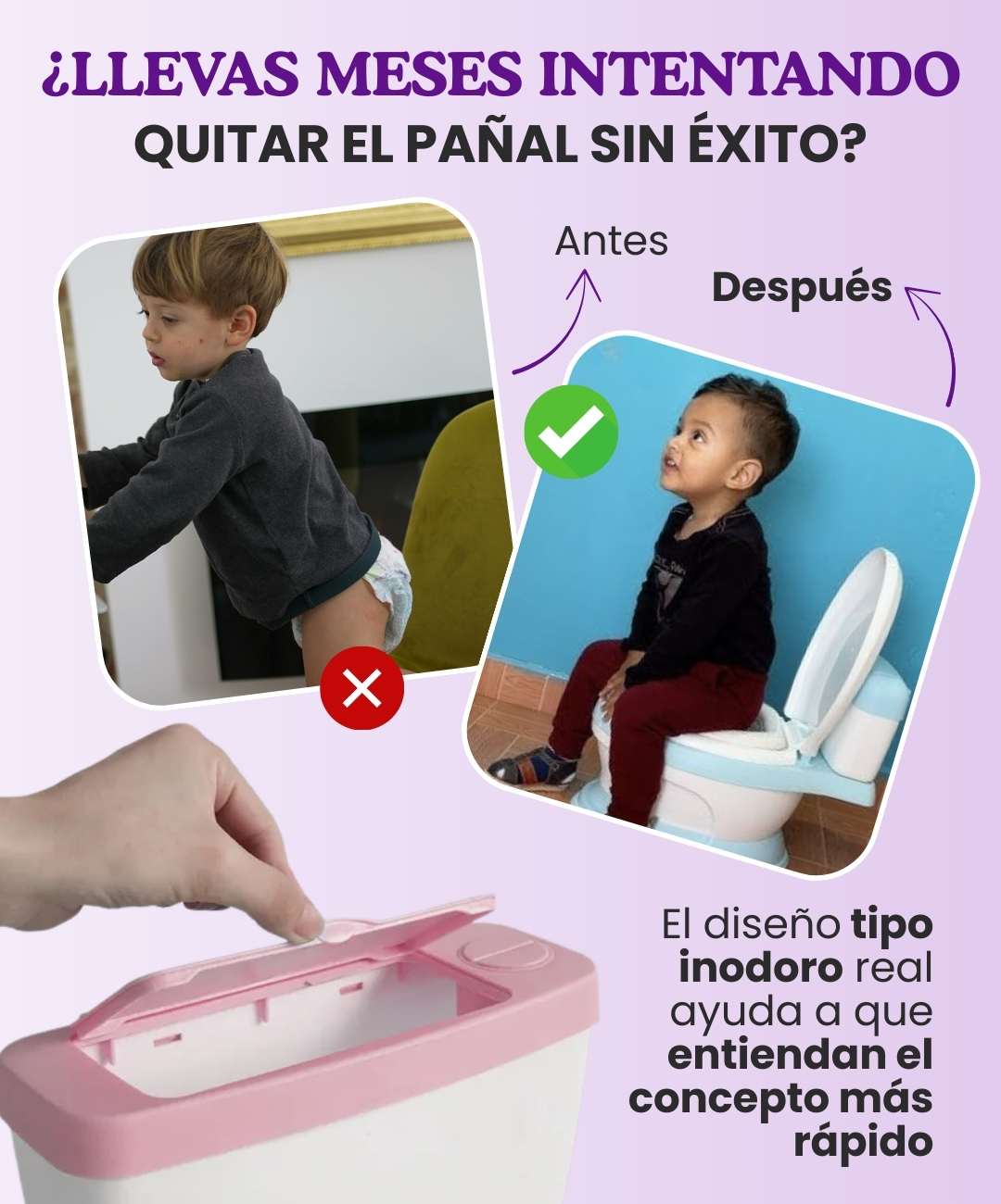 Al parecerse al inodoro de casa, conecta inmediatamente. Ve que mamá y papá usan algo similar = quiere imitarlos