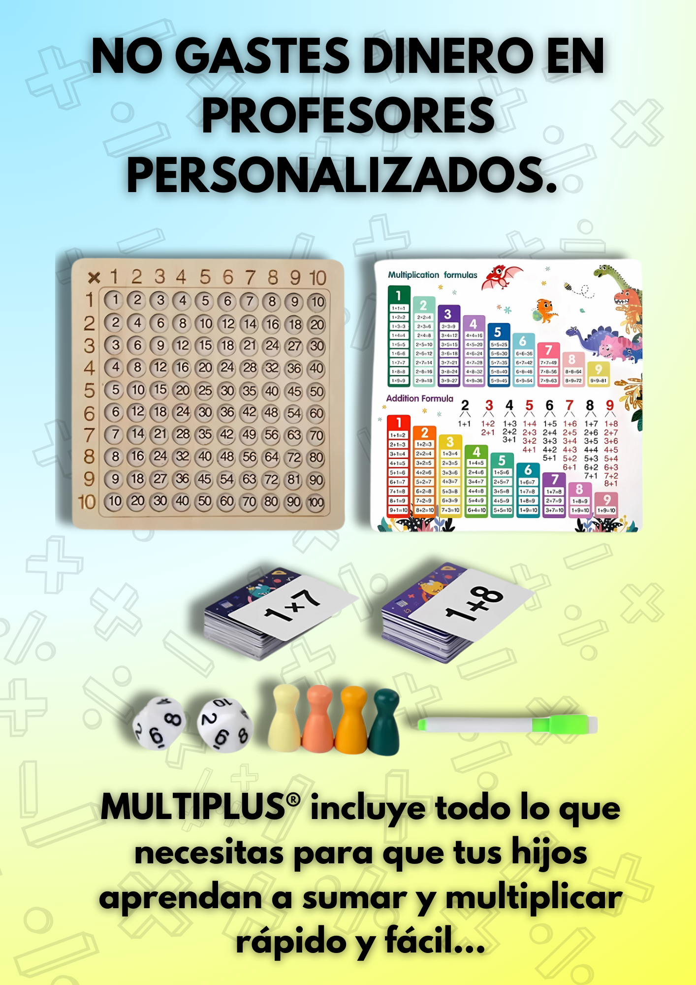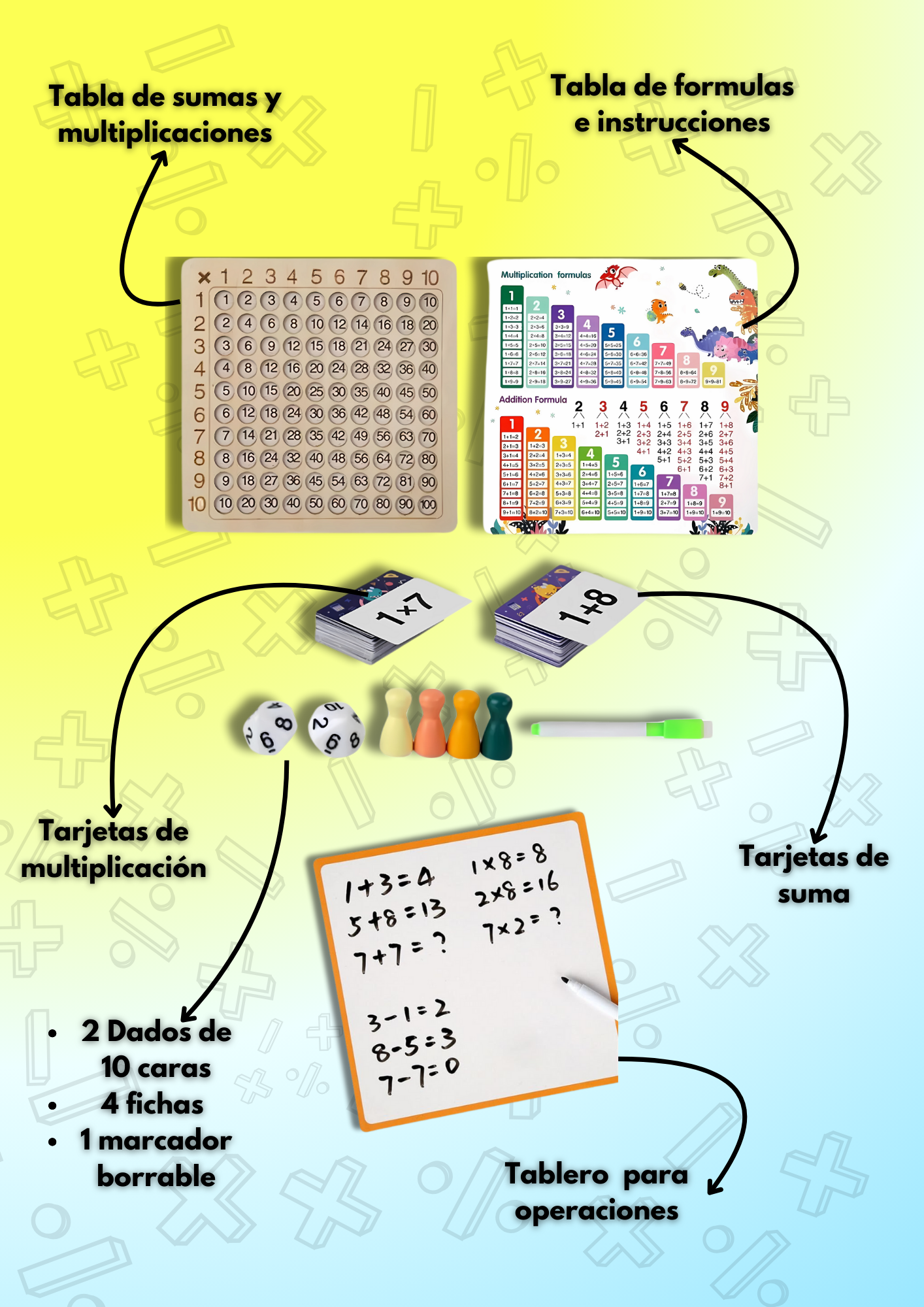 No, puedes jugar con los dados, tarjetas e incluso escribiendo tu mismo las multiplicaciones en el tablero incluido.